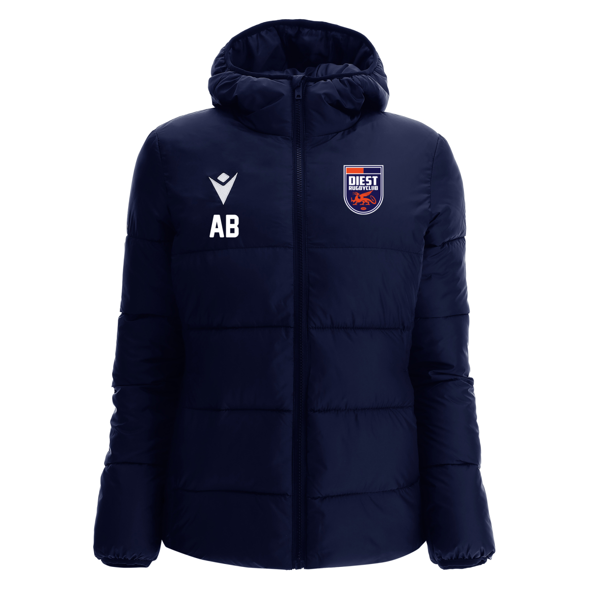 Gevarde jas voor vrouwen in cabaret met een integrale kap met lycra -randen. Fulllength Toneontone Central Zip met de Macron -held en zakken met zip -sluiting. Manchetten met Lycra -randen.